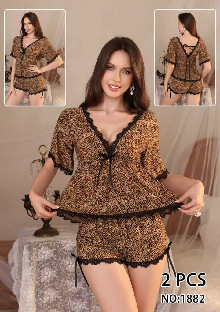 2 Pcs Womens Malai Net FabricTiger Print Nighty