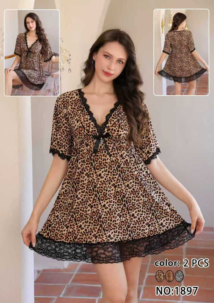 2 Pcs Womens Malai Net Tiger Print Nighty